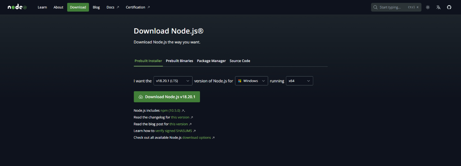 Ensure that Node.js is installed on your system. You can download and install it from the official Node.js website.